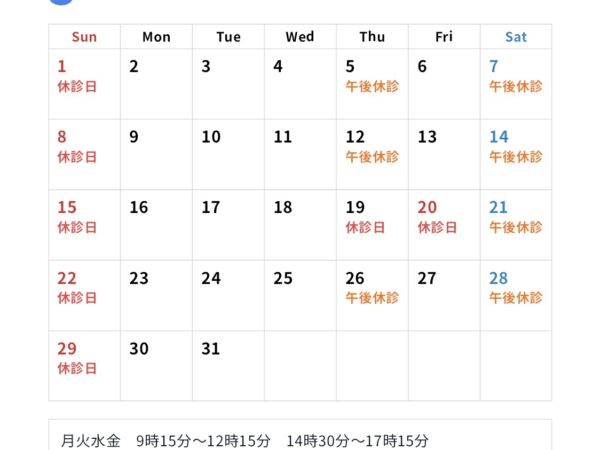 臨時休診日はお知らせにてご案内します。